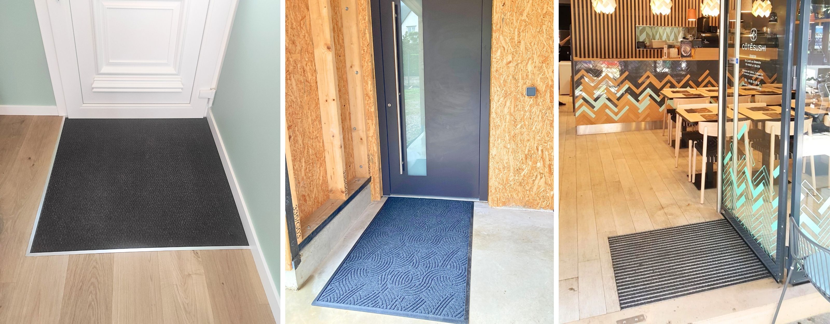 Para gozar de alfombras o felpudos a medida, es sencillo, elija la que le interese entra nuestra colección. Luego nos indica el alto, el ancho, el color (para la mayoría de las referencias) y si lo desea, puede agregar un marco de aluminio y soportes de fijación y tornillos. Para cada alfombra, indicamos el tiempo de fabricación y las características principales (material - fibra y capa subyacente - y implantación - dentro o fuera - por ejemplo). Por supuesto, si tiene alguna pregunta sobre nuestros revestimientos hechos a medida, puede ponerse en contacto con nuestro equipo. Estamos a su disposición para responderle y acompañarle en su proyecto.